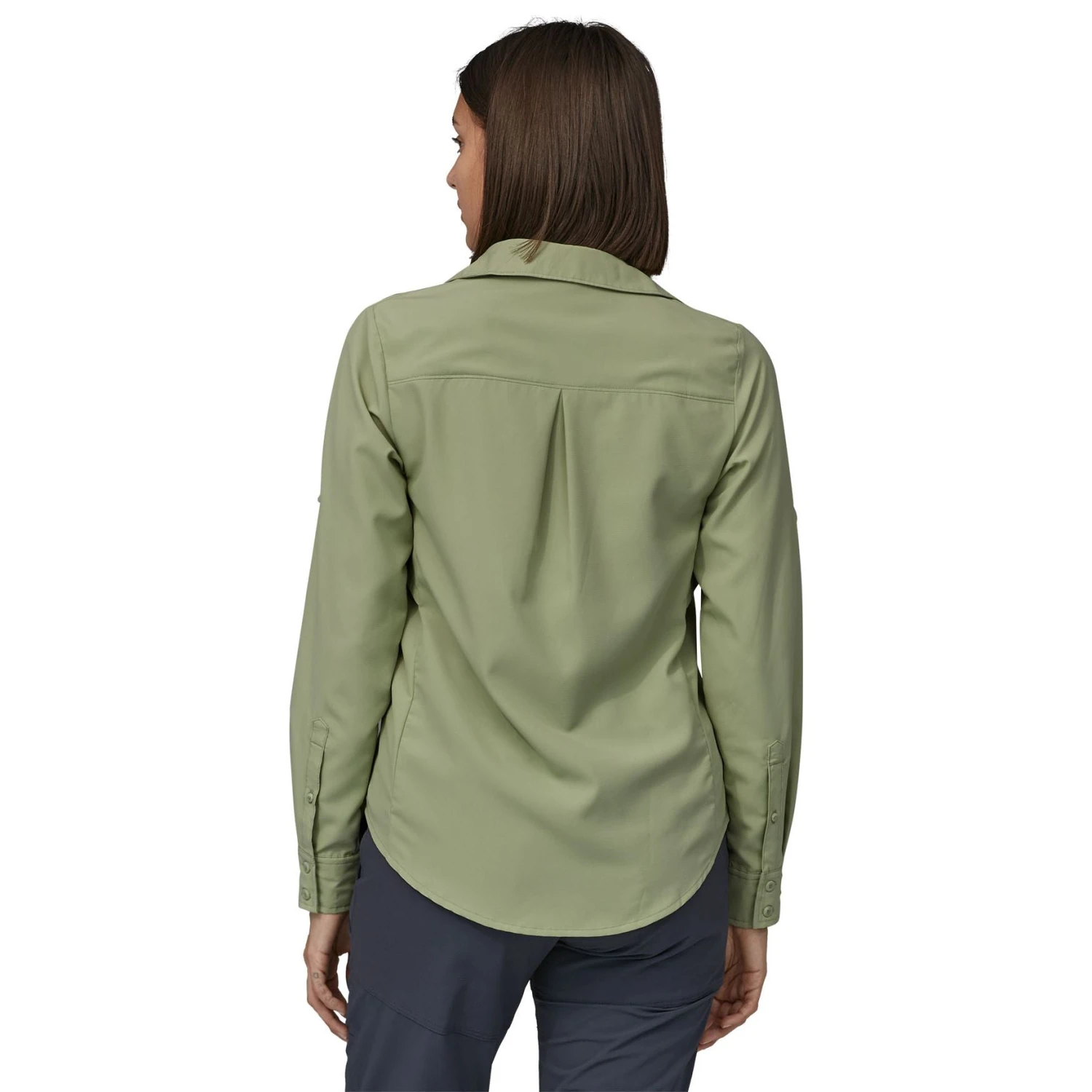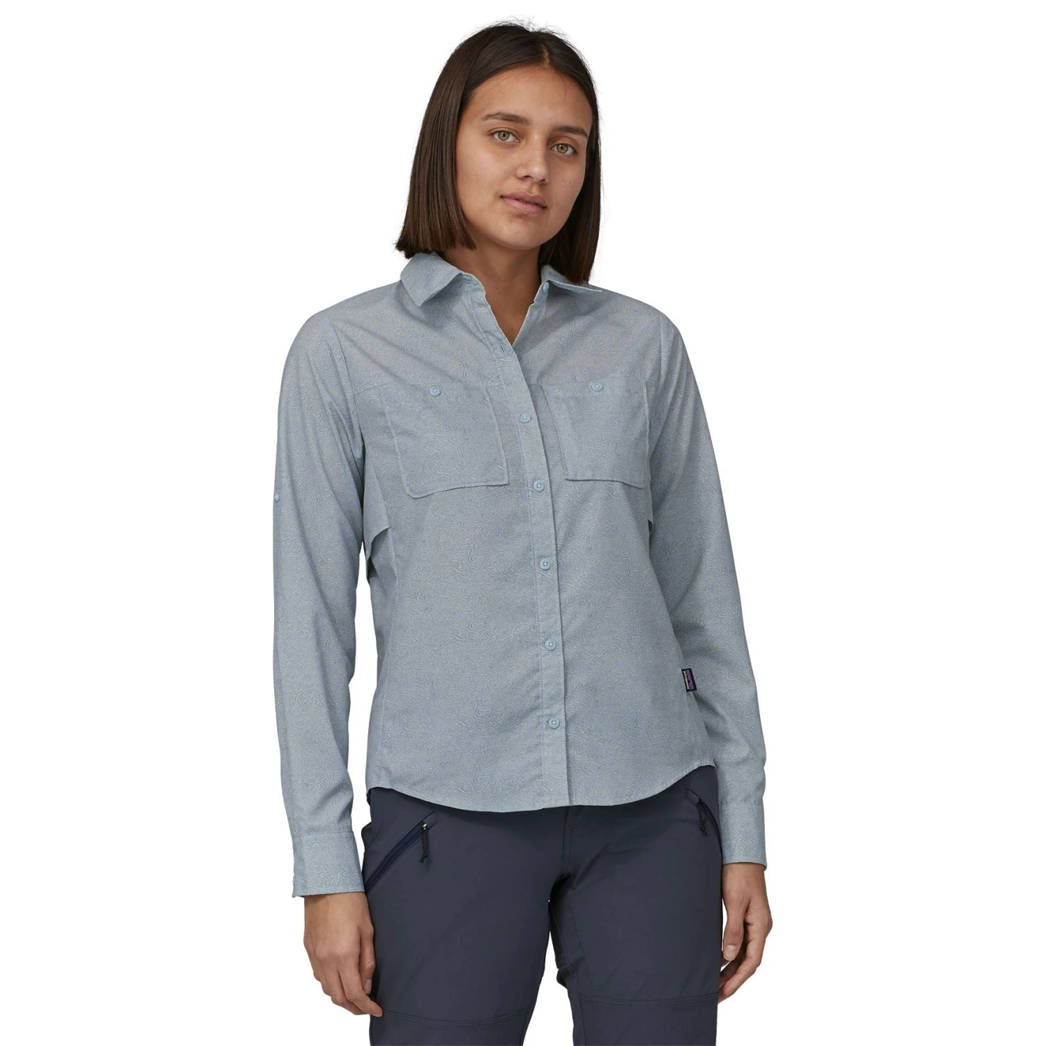 - Adjustable, roll-up sleeves secure with button closure; button closure at cuffs