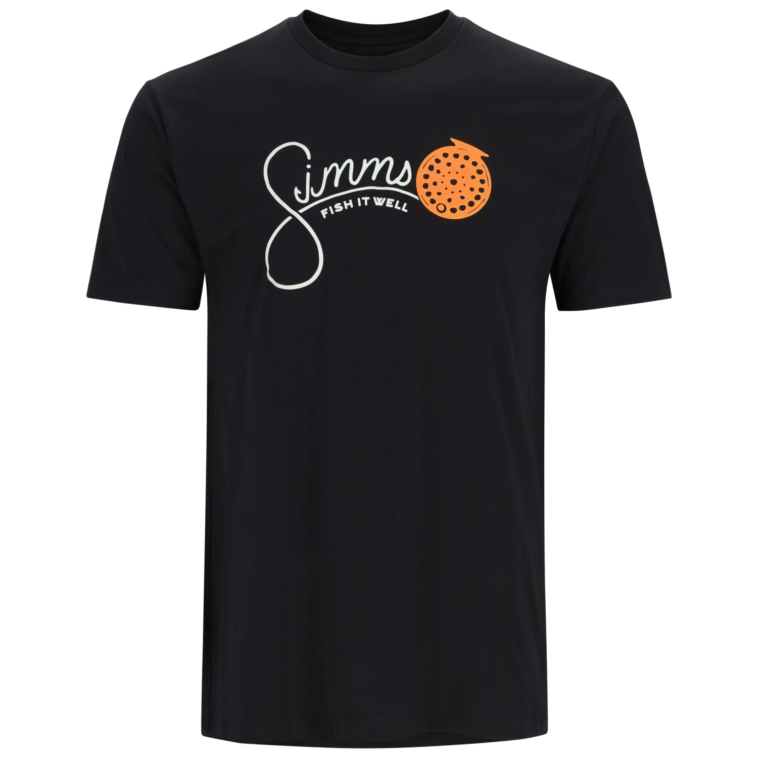 The Simms Reel T-Shirt cranks in the anytime, anyplace comfort with a soft, cotton-poly blend and a signature logo look.